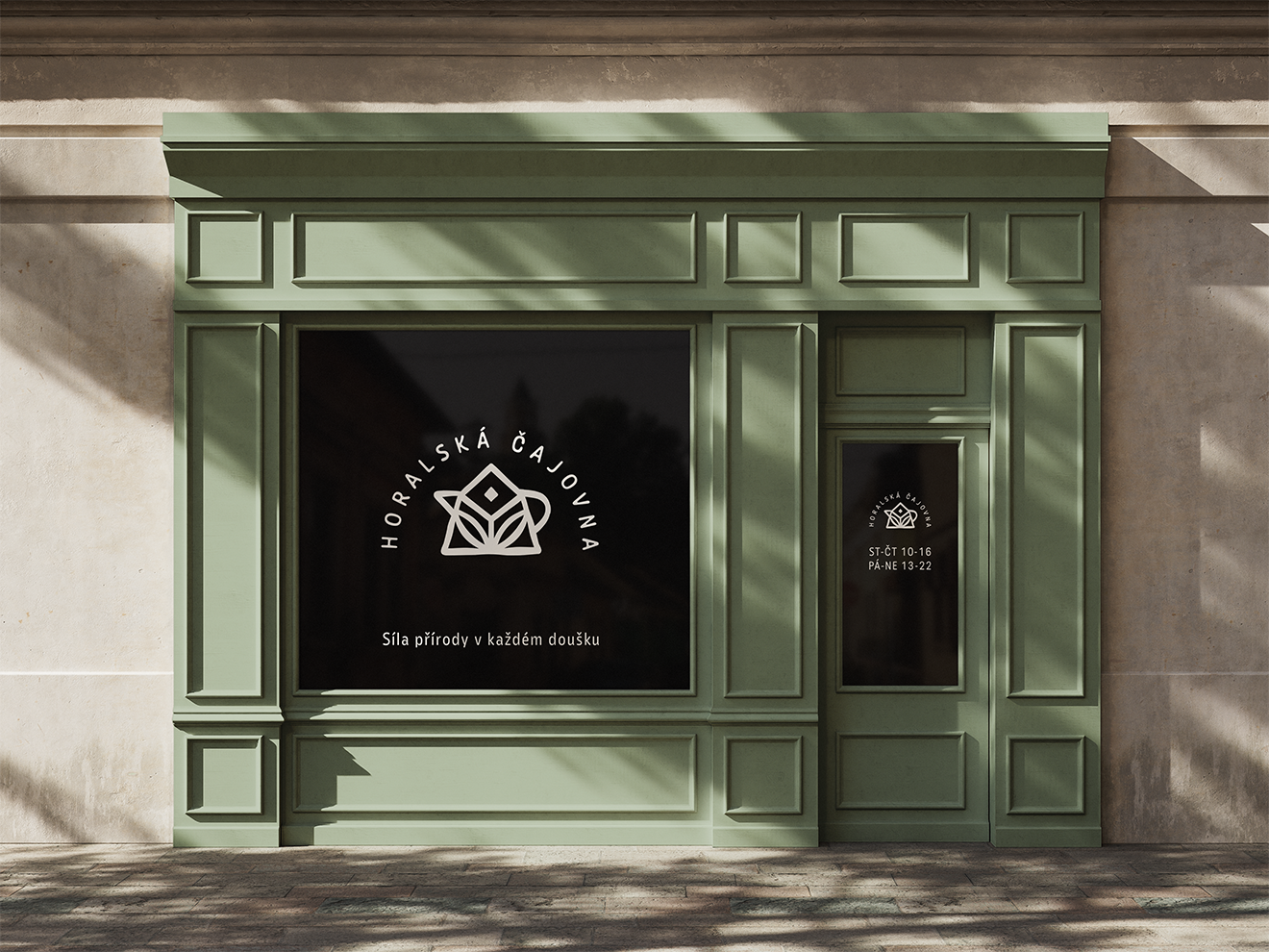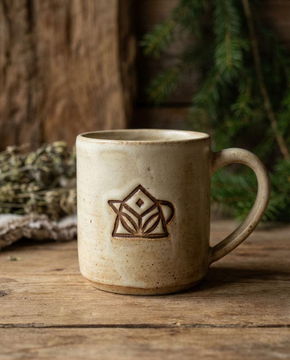 Logo jsem navrhla jako magický symbol, který v sobě nese pradávnou moudrost předků. Ti žili v přímém kontaktu s přírodou a vyznali se v umění bylin. V logu se skrývá dům - archetyp útočiště, hora - archetyp času, trpělivosti a klidné přítomnosti; bylina - archetyp dokonalosti a síly přírody a nakonec čajová konvice - archetyp sdílení, rituálu a pohostinnosti.